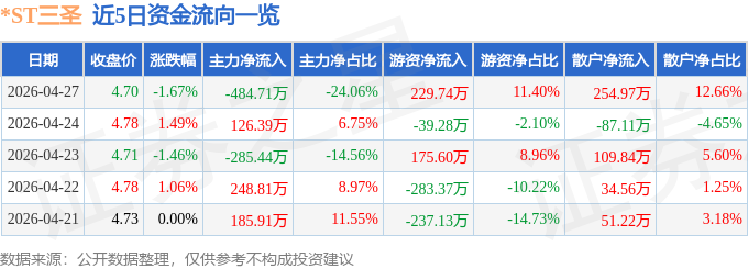 4月27日的资金流向数据方面,主力资金净流出484.71万元,占总成交额24.06%,游资资金净流入229.74万元,占总成交额11.4%,散户资金净流入254.97万元,占总成交额12.66%。